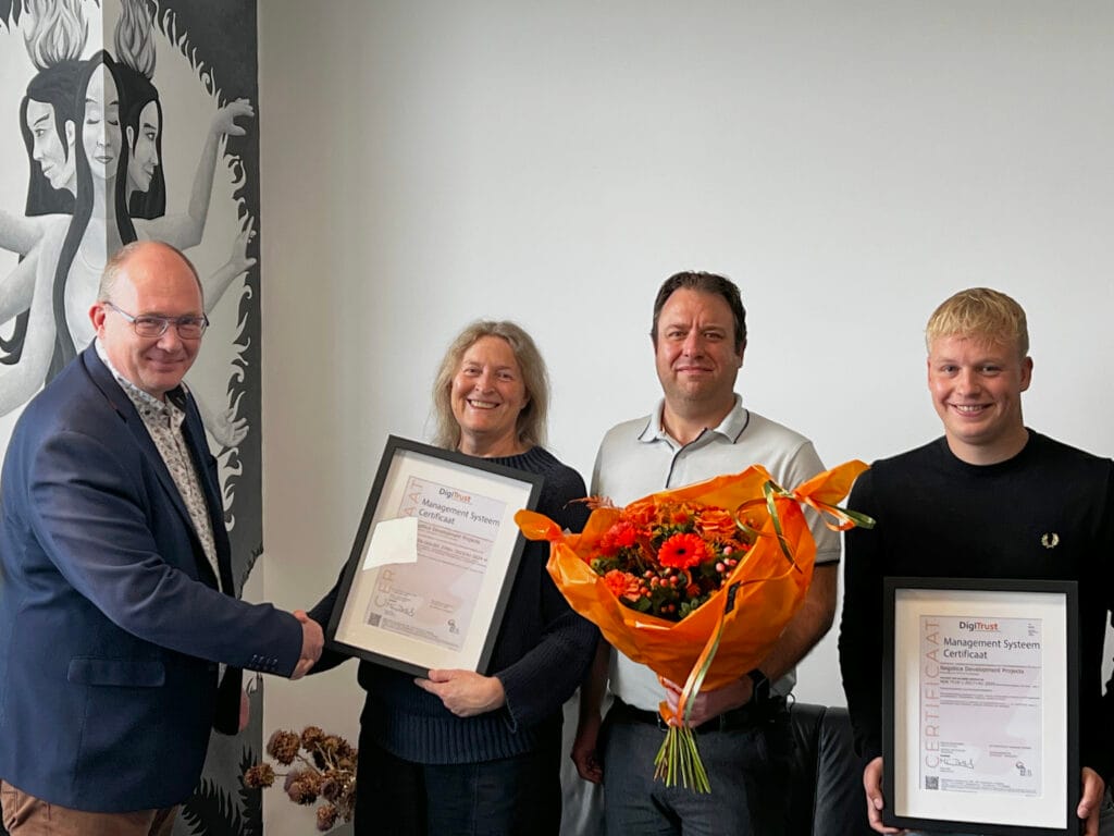 Wie wichtig es für alle Beteiligten ist, dass die Organisation ihr Informationssicherheitsmanagementsystem in Ordnung hat. Und wenn wir dann noch ein wenig Zeit haben, kommen wir zu einer feierlichen Übergabe, versehen mit 2 schön gerahmten Zertifikaten und bringen die bekannten orangefarbenen DigiTrust-Blumen mit. Herzlichen Glückwunsch zu diesem Ergebnis. 💐