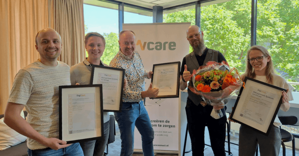 A big compliment to the organisation for this great result. Vcare connect is a provider of communication technologies aimed at improving work processes within healthcare. And of course we will come along with beautifully framed certificates and take the coveted Orange DigiTrust flowers with us. would you like to earn those too? Then contact us at [email protected]