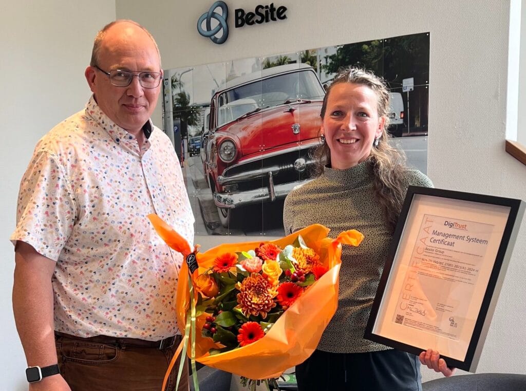 De organisatie is al sinds 2023 gecertificeerd bij DigiTrust, maar toen hebben we geen officiële uitreiking georganiseerd. Nu heeft de organisatie het ISMS succesvol omgebouwd naar de nieuwe versie van de norm en in juli hebben we dit positief afgerond. En dus komen we alsnog langs met een mooi ingelijst certificaat én nemen we die felbegeerde oranje DigiTrust bloemen mee. Wil je die ook verdienen, na een intensief implementatie traject? Neem dan contact met ons op [email protected]