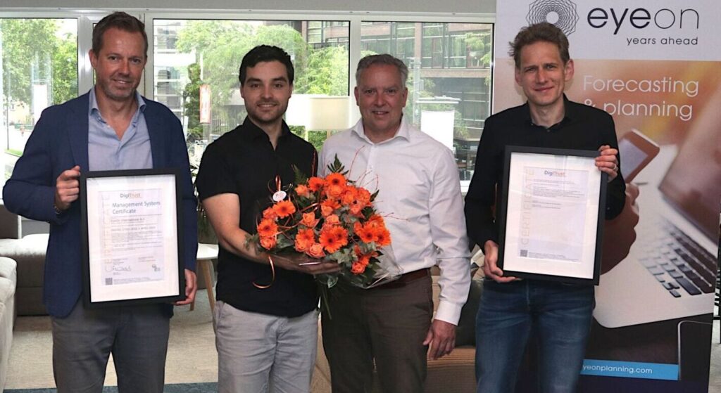 Recentelijk mocht ik het ISO27001 certificaat uitreiken aan EyeOn, ย een adviesbureau gespecialiseerd in planning en forecasting.