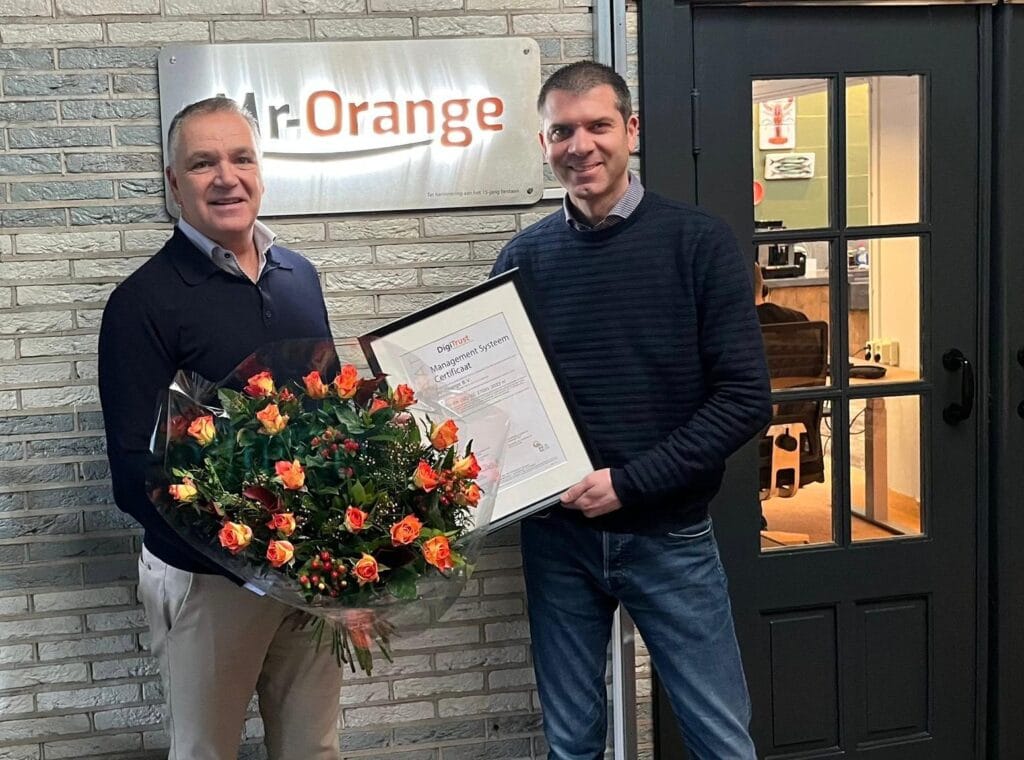 Sinds 2018 is Mr-Orange al bij DigiTrust ISO27001 gecertificeerd. Recentelijk heeft DigiTrust een her-certificering audit uitgevoerd en hieruit bleek dat de organisatie het Managementsysteem voor informatiebeveiliging gewoon tip top op orde heeft. Hoe gaaf is het dan, om na al die jaren gewoon weer op de stoep te staan met een ingelijst certificaat en een grote oranje bos DigiTrust bloemen. Gefeliciteerd Mr-Orange.